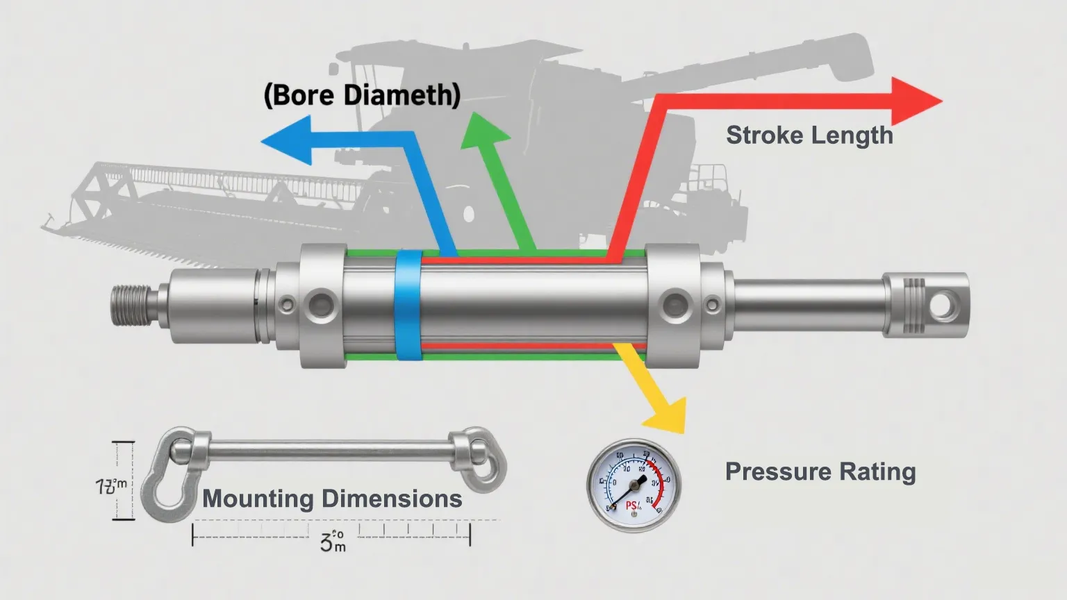 முதலில், துளை விட்டம். உங்கள் அறுவடை ஹைட்ராலிக் சிலிண்டரில் எவ்வளவு தசை இருக்கிறது என்பதை இதுவே தீர்மானிக்கிறது. மிகவும் சிறியது, மேலும் நீங்கள் அடர்த்தியான பயிர்களில் இருக்கும்போது அந்த கனமான தலைப்பை உயர்த்துவதற்கு அது சிரமப்படும். மிகப் பெரியது, நீங்கள் வேறு இடத்திற்குச் செல்லக்கூடிய சக்தியை வீணடிக்கிறீர்கள். உங்கள் பழைய சிலிண்டரின் விவரக்குறிப்புகள் அல்லது உங்கள் அறுவடைக் கருவியின் கையேட்டைச் சரிபார்க்கவும் - வயலில் கடினமான நாட்களைக் கையாளும் வகையான சக்தியை நீங்கள் விரும்பினால், இந்த எண் பொருந்த வேண்டும், எளிமையானது மற்றும் எளிமையானது.