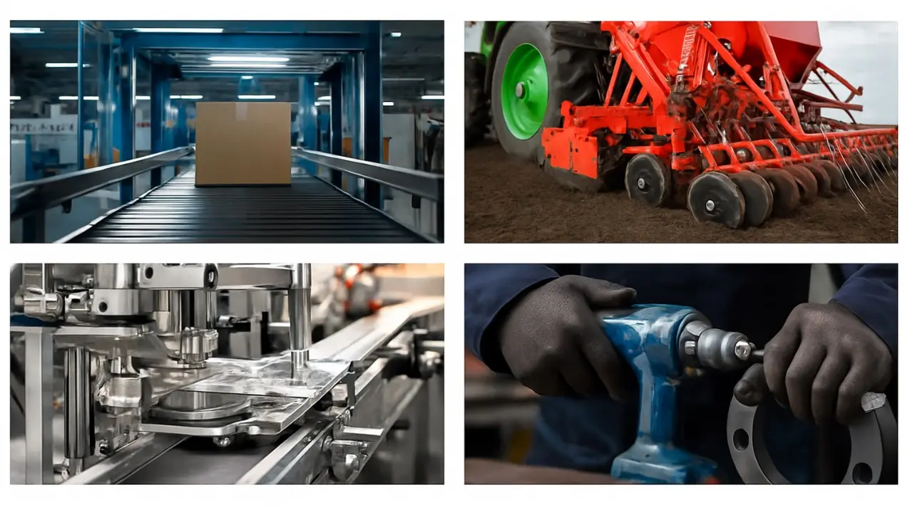 ஒரு தானியங்கி அசெம்பிளி லைனில் கன்வேயர் போன்ற நடைமுறை பயன்பாடுகளில், திஸ்பர் கியர்சரக்குகள் சீராக முன்னேறும் வகையில் ரோலரைச் சுழற்றுவதற்குப் பொறுப்பு; எடுத்துக்காட்டாக, ஒரு விவசாய விதைப்பு இயந்திரத்தில், அவர்கள் சீரான செயல்பாட்டை உறுதி செய்வதற்காக விதைப்பு தாளத்தை கட்டுப்படுத்துவதில் பங்கேற்கிறார்கள்; சில பொதுவான சக்தி கருவிகளில் கூட, இது சக்தியை கடத்துவதில் முக்கிய பங்கு வகிக்கிறது.